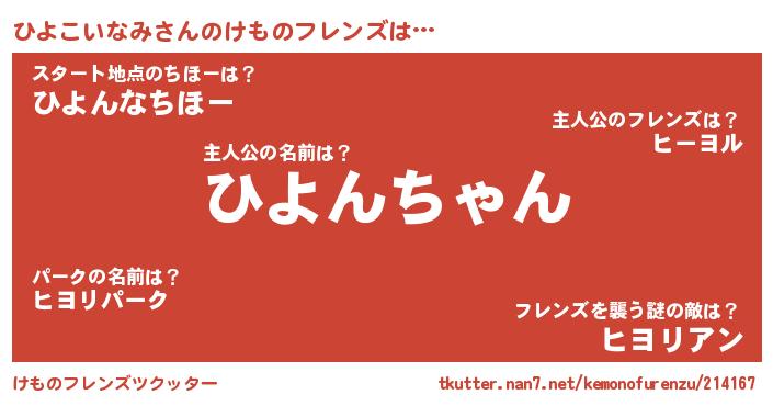 | 2回繰り返すあだ名 | 『ひよひよ』『ひひよよ』『はーはー』 |