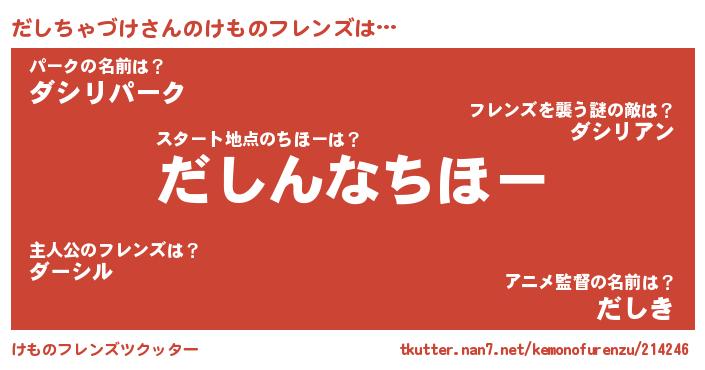 | 意味不明あだ名 | 『だしちゃづけフォーエバー』 |