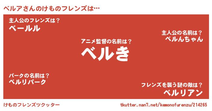 | ヘコむあだ名 | 『ベルを』『ベルア(笑)』『ベルもー』 |