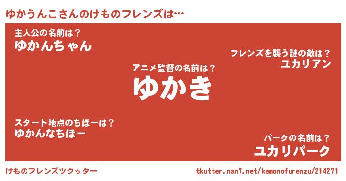 | 男性向けラノベタイトル風あだ名 | 『ゆかうんこの嫁は女の子じゃないと思った?』 |