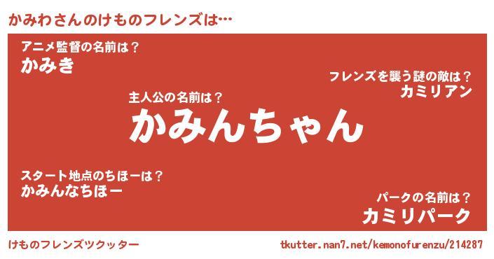 | 意味不明あだ名 | 『ペロリンかみわ』『自称かみわ』 |