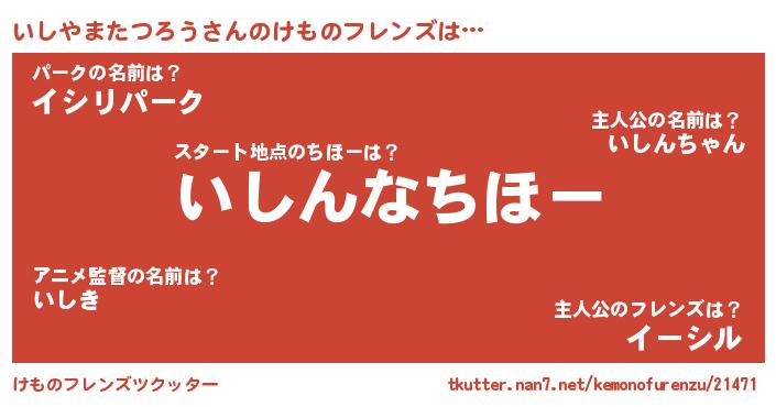 | 2回繰り返すあだ名 | 『いいしし』『じんじん』『ちんちん』 |