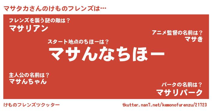 | 男性向けラノベタイトル風あだ名 | 『マサタカスレイヤー』『緋弾のマサタカ』 |