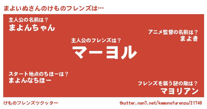 | ヘコむあだ名 | 『まよいぬ(小並感)』『まよにゅー』 |