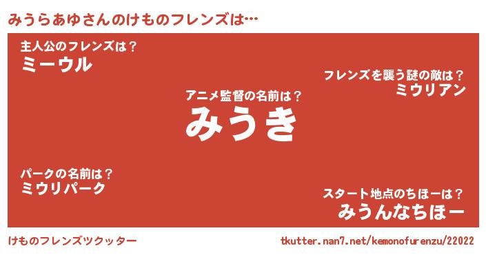 | 肩書あだ名 | 『みうらあゆ大佐』『みうらあゆ班長』 |