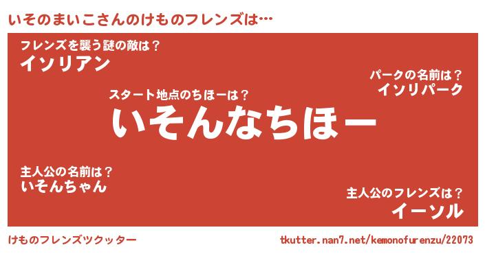 | 市区町村名 | 『いそ幌市』『いそ島市』『いそ覇市』 |