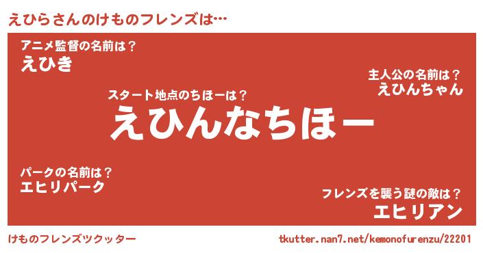 | 意味不明あだ名 | 『えひらフォーエバー』『ペロリンえひら』 |