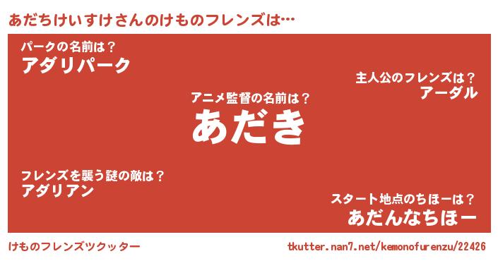 | 市区町村名 | 『あだ田谷区』『京あだ市』 |