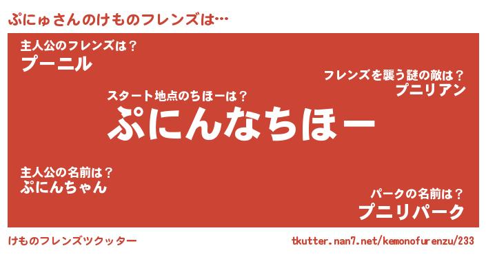 | 2回繰り返すあだ名 | 『ぷぷにに』『だるだる』『きしきし』 |
