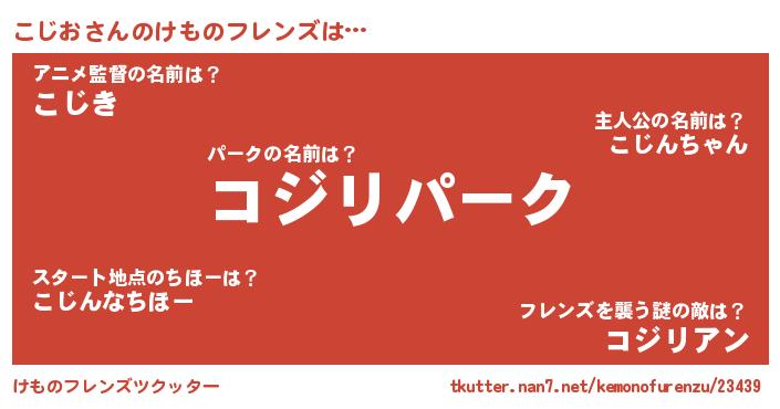 | ヒーロー風カッコイイあだ名 | 『サイバー戦士コジオ』『魔戒騎士コジ』 |