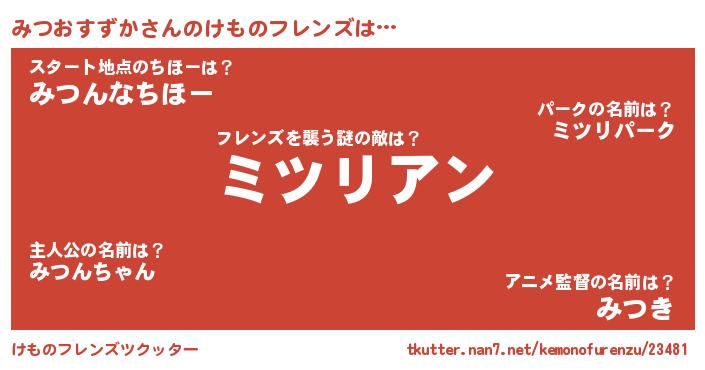 | 男性向けラノベタイトル風あだ名 | 『みつおすずかに滅ぼされるだけの簡単なお仕事です』 |