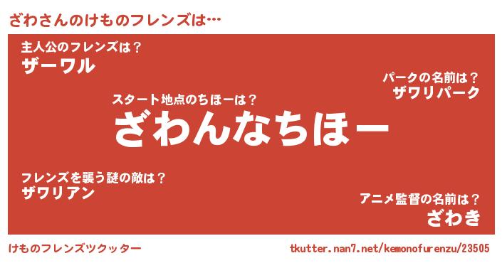 | 男性向けラノベタイトル風あだ名 | 『ざわに滅ぼされるだけの簡単なお仕事です』 |