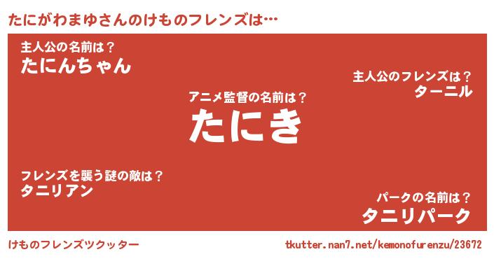 | 男性向けラノベタイトル風あだ名 | 『魔弾の王とたにがわまゆ』 |