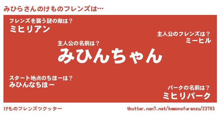 | 男性向けラノベタイトル風あだ名 | 『みひらの憂鬱』『ミヒラスレイヤー』 |