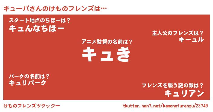 | 男性向けラノベタイトル風あだ名 | 『キューパの嫁は女の子じゃないと思った?』 |