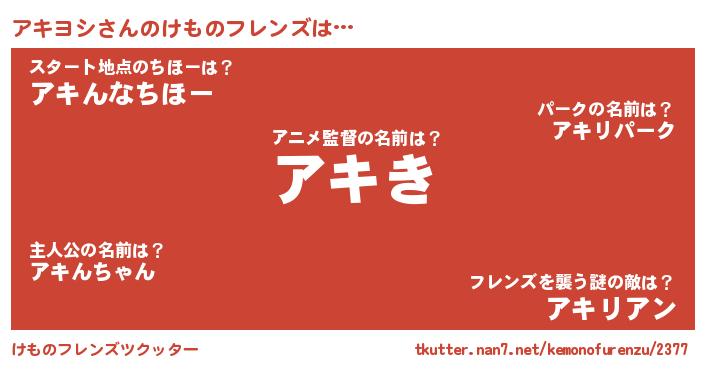 | ピコ太郎風あだ名 | 『アキ一郎』『ピア次郎』『アア太郎』 |