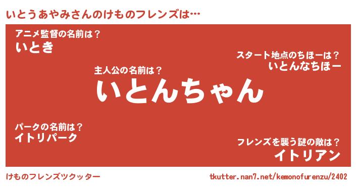 | 肩書あだ名 | 『いとうあやみ社長』『いとうあやみ班長』 |