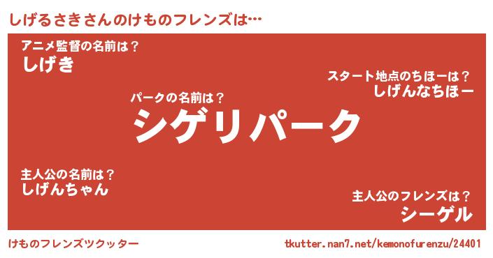 | 男性向けラノベタイトル風あだ名 | 『Re:しげるさきから始める異世界生活』 |