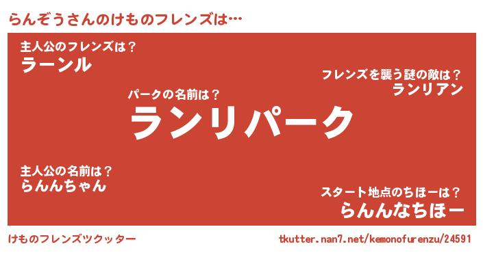 | 男性向けラノベタイトル風あだ名 | 『らんぞうに滅ぼされるだけの簡単なお仕事です』 |