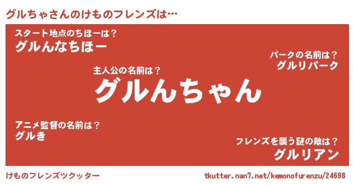 | 男性向けラノベタイトル風あだ名 | 『グルちゃに滅ぼされるだけの簡単なお仕事です』 |