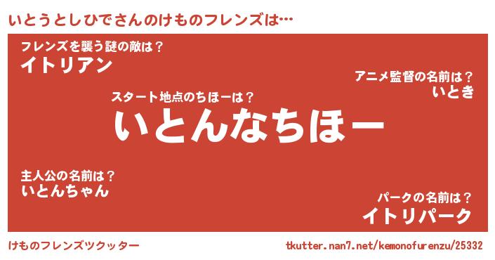 | 意味不明あだ名 | 『住所不定無職いとうとしひで(53歳)』 |