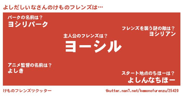 | ファンタジー風あだ名 | 『ヨシディッシュ』『ゼヨシトゥ』 |