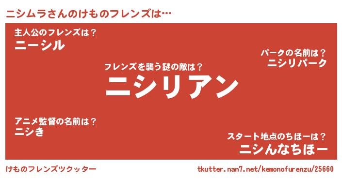 | 男性向けラノベタイトル風あだ名 | 『おまえをオタクにしてやるから、俺をニシムラにしてくれ! 』 |