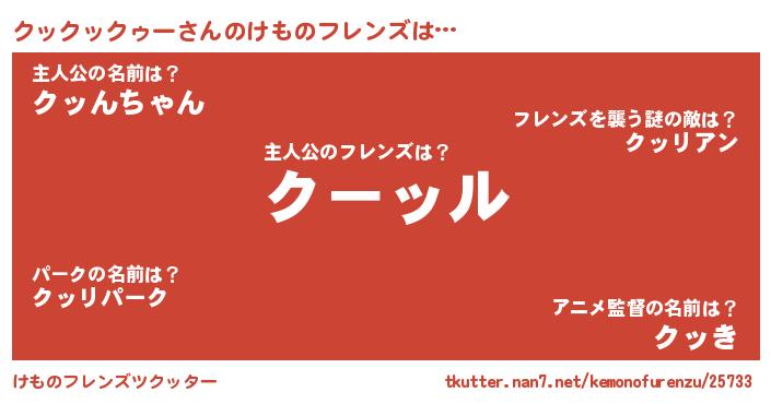 | 男性向けラノベタイトル風あだ名 | 『クックックゥーという概念が存在しない退屈な世界 』 |