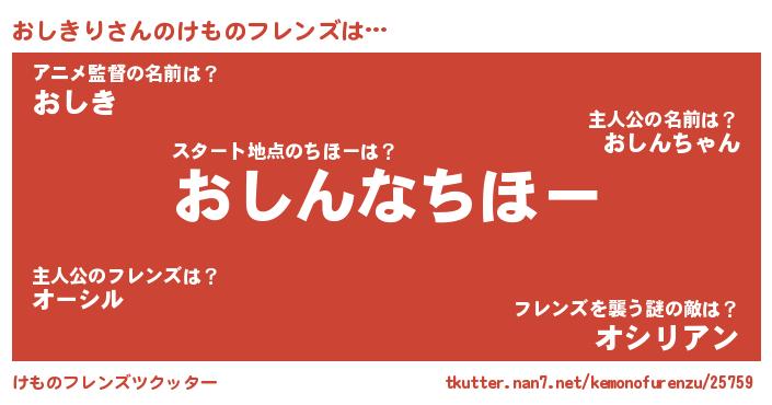 | 2回繰り返すあだ名 | 『おおしし』『てくてく』『ざーざー』 |