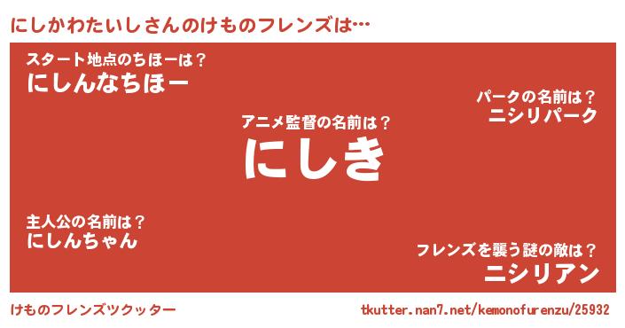 | 料理風あだ名 | 『にしかわたいしごはん』 |
