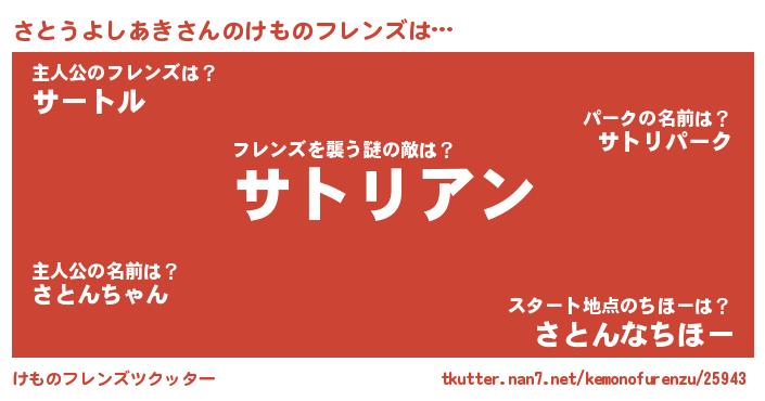 | 男性向けラノベタイトル風あだ名 | 『おまえをオタクにしてやるから、俺をさとうよしあきにしてくれ! 』 |