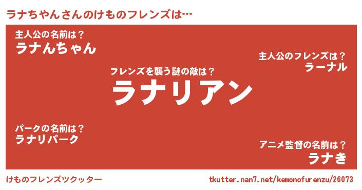 | 男性向けラノベタイトル風あだ名 | 『この素晴らしい世界にラナちやんを!』 |