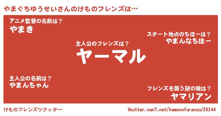 | 男性向けラノベタイトル風あだ名 | 『やまぐちゆうせいという概念が存在しない退屈な世界 』 |
