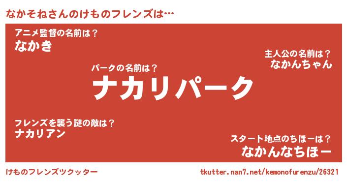 | 意味不明あだ名 | 『自称なかそね』『しいたけ科なかそね属』 |