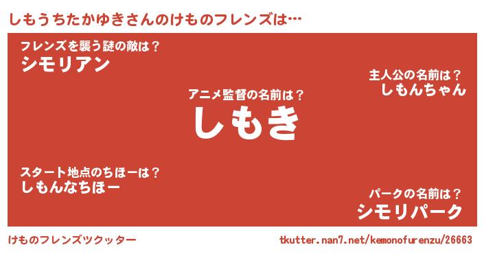 | 男性向けラノベタイトル風あだ名 | 『しもうちたかゆきの嫁は女の子じゃないと思った?』 |