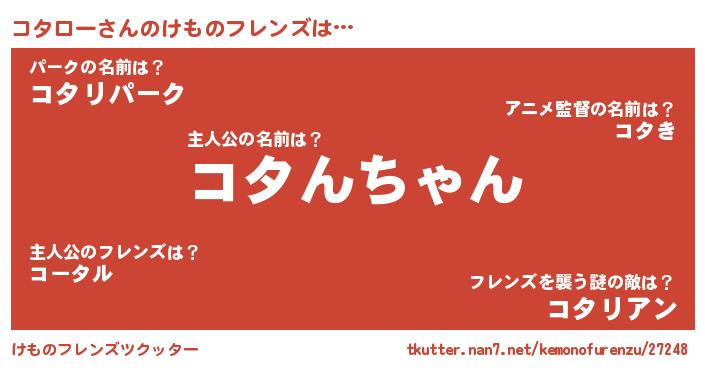 | ポケモン風あだ名 | 『コタチュウ』『コタセウス』 |