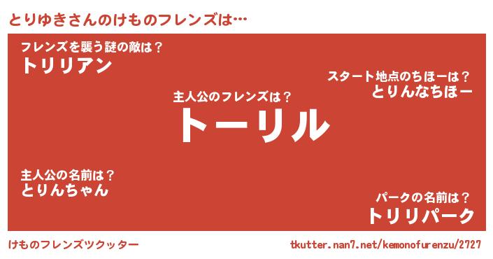 | 男性向けラノベタイトル風あだ名 | 『とりゆきという概念が存在しない退屈な世界 』 |