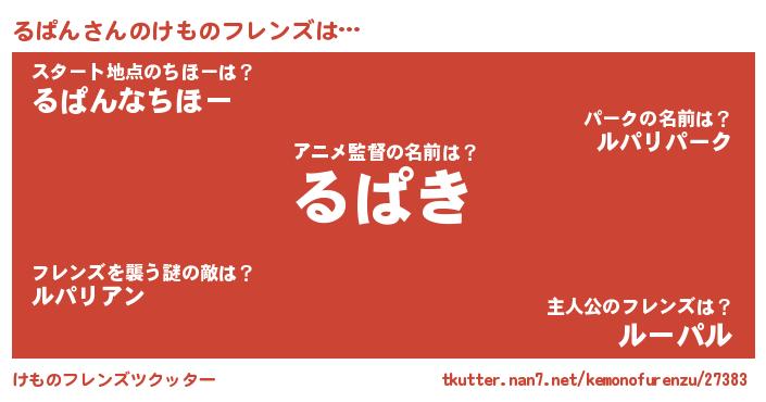 | ヘコむあだ名 | 『るぱを』『なまこ酢』『るぱもー』 |