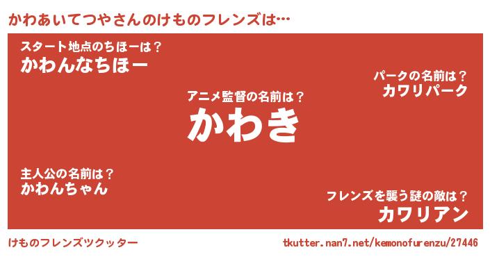 | ポケモン風あだ名 | 『ヒカワアイテツヤ』『カワアダネ』 |