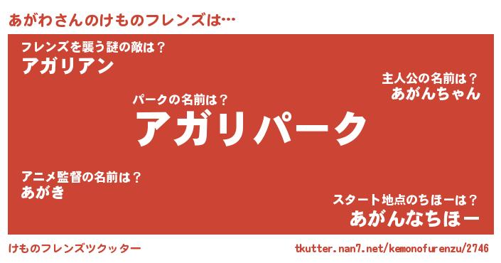 | 意味不明あだ名 | 『自称あがわ』『眠気覚ましガムあがわ味』 |