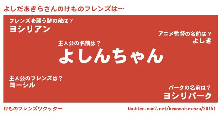 | ヒーロー風カッコイイあだ名 | 『スーパーヨシダアキラ』『仮面ヨシダー』 |