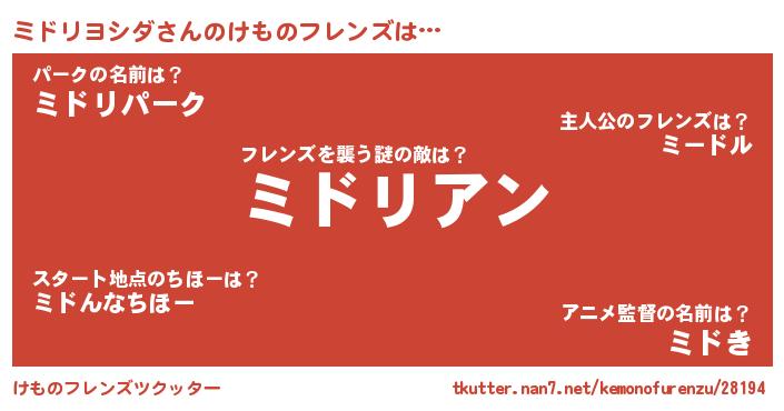 | ヒーロー風カッコイイあだ名 | 『慈愛の使者ミドリヨシダ』 |