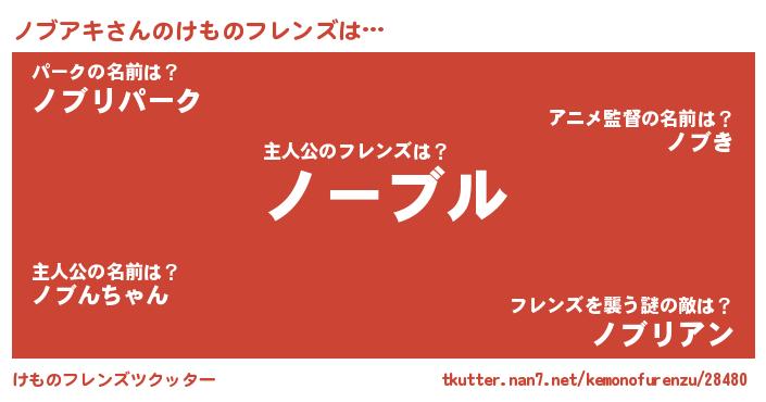 | 女子向けラノベタイトル風あだ名 | 『ノブアキの契約王妃』『ノブアキ恋絵巻』 |