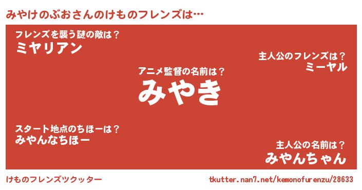 | ヘコむあだ名 | 『みやお』『みやもー』『つくし』 |
