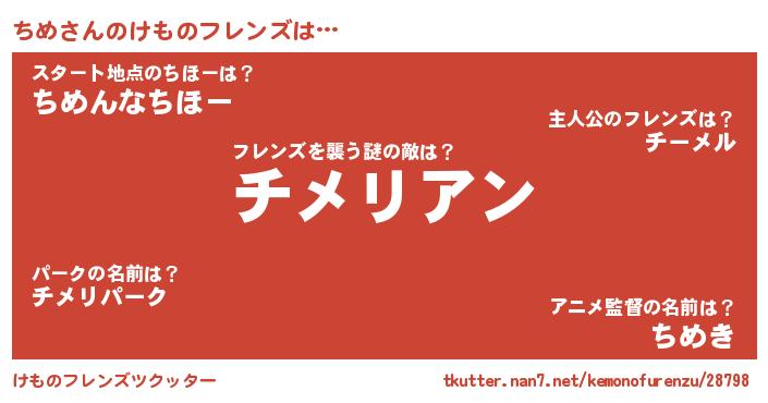 | ポケモン風あだ名 | 『チックウザ』『チメダネ』『ヒチメ』 |