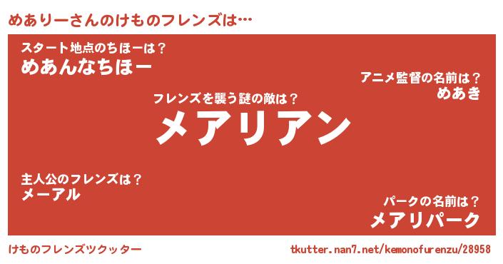 | ヒーロー風カッコイイあだ名 | 『仮面メアダー』『慈愛の使者めありー』 |
