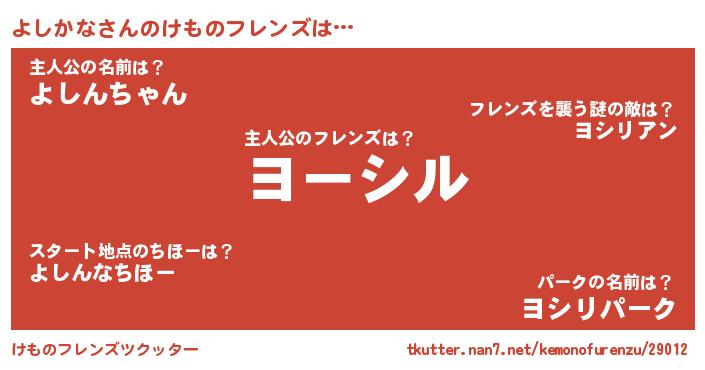| 男性向けラノベタイトル風あだ名 | 『魔弾の王とよしかな』『よしかなの憂鬱』 |