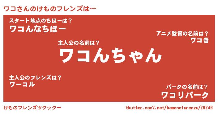 | 2回繰り返すあだ名 | 『ワコワコ』『とぽとぽ』『ワワココ』 |