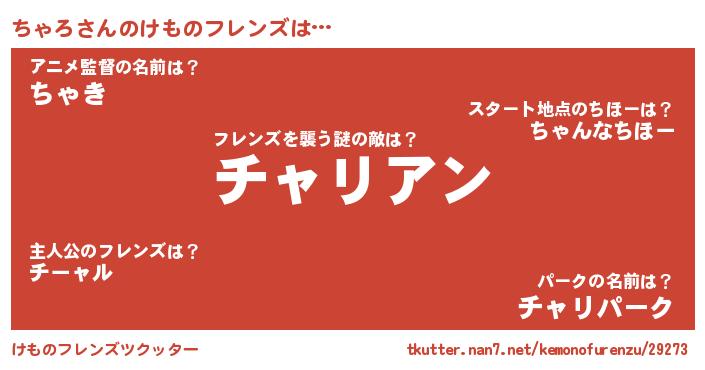 | 意味不明あだ名 | 『ニラ科ちゃろ属』『自称ちゃろ』 |