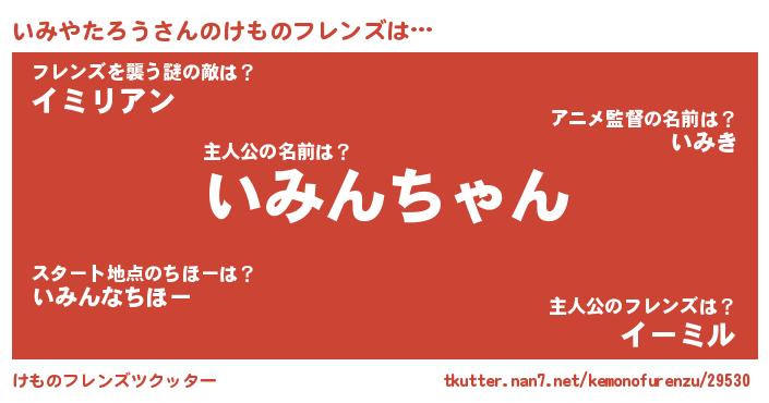 | ヒーロー風カッコイイあだ名 | 『スーパーイミヤタロウ』『魔戒騎士イミ』 |